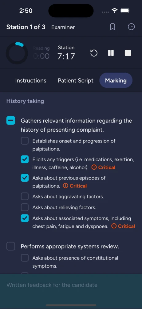 Practise while eMedici keeps time, and evaluate your performance with comprehensive marking sheets and examiner feedback.