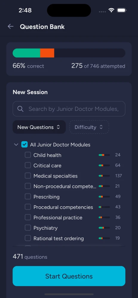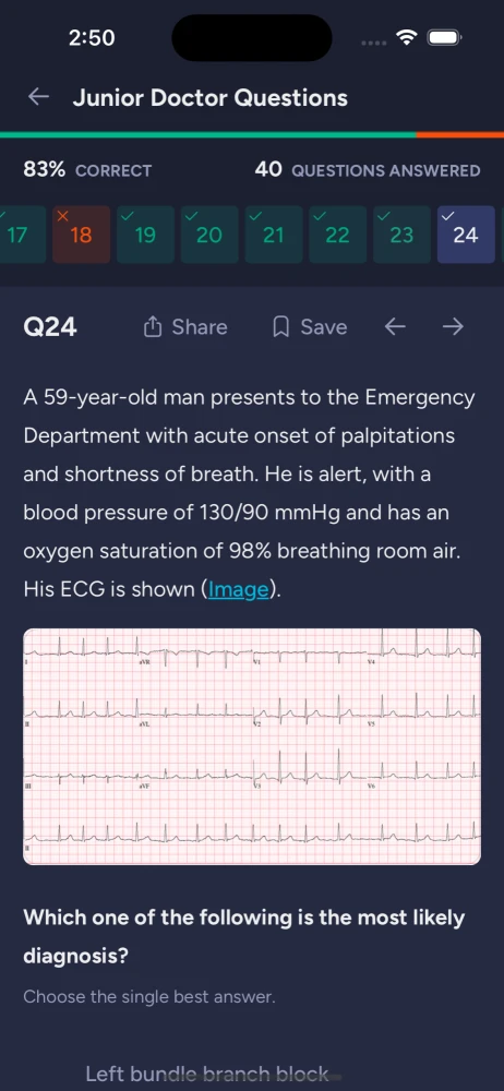 Study for your Surgery rotation or brush up on ECGs - filter questions by modules, specialty, diagnosis, topic, and difficulty.